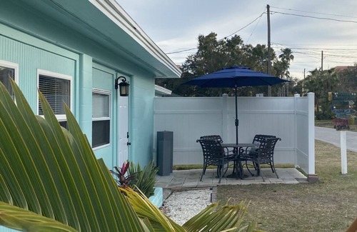 Quiet and cozy studio perfect for 2. Madeira beach is only 3 miles away, along with several other gulf beaches, bars and restaurants. Spend the day relaxing on the patio or soaking up some fun in the sun at the beach. Book one of the many adventure tours out of Johns Pass Village and make this a memorable trip! Tiki Boats, Jet Ski, Parasail. So much to do, so little time. This studio offers a queen size bed, coastal tiled bathroom, kitchenette and private patio.