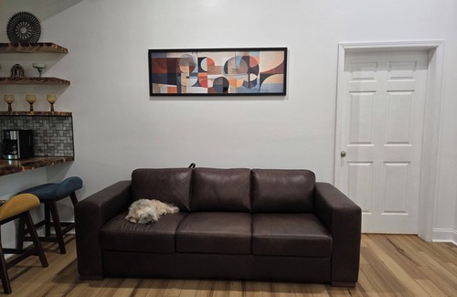 Make yourself at home in this 2-bedroom Pet friendly Sparta retreat. Fully fenced for your pups to run around in. Surrounded by trees and fields enjoy this beautiful rural setting away from city life. Come and enjoy peace in nature with a hot tub and a hammock to relax in. This phenomenal house features 1 king bed, 1 full bed, 2 full bathrooms , and a cozy living room with a sofa bed. Perfect for guests looking for a superb getaway with heating, AC, and a hairdryer provided.