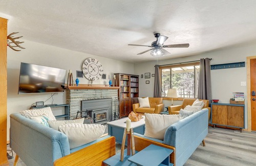 Live the slow life at this secluded Alpine vacation rental cabin, where you’ll be surrounded by natural beauty, and you may even spot elk nearby! Spend your days golfing at the Alpine Country Club golf course, or head to the stunning Luna Lake for a relaxing picnic surrounded by mountain views. This 3-bedroom, 1-bath cabin features inviting mid-century modern decor, a cozy fireplace, and plenty of books, board games, and movies for your enjoyment. You and your crew will never want to leave!