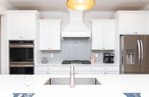 Whether you are in town for a guys weekend to visit Bear Trap Dunes for 18-36 holes, or a girls weekend getaway at Salted Vines, this is the perfect vacation rental for everyone to relax at a home away from home. Gather around the dining table, seating 10, to indulge in homemade meals prepared in the well-equipped kitchen. The dining area seamlessly transitions into a cozy living room, featuring an oversized smart TV and an adjoining outdoor patio, perfect for tranquil mornings with a freshly brewed coffee. Spend evenings outdoors on the spacious back lawn, engaging in bags or treat yourself to refreshing drinks as you unwind under the setting sun.