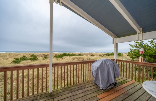 Pet Friendly Beachfront Home with Oceanfront Deck, Amazing Views, Walk to Town | House in Rockaway Beach