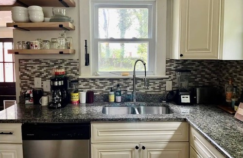 Enjoy cold nights by the fireplace or hot evenings on the deck looking at the stars and view of Paris Mountain. Centrally located between Travelers Rest and Greenville. Close to Furman, shopping, swamp rabbit trail and more. This 2 bedroom 1920s craftsman is fully stocked with kitchen appliances, gas stove, washer/dryer, Amazon Alexa and record player for music and smart tv for your favorite streaming apps. Keyless entry and off street parking. This house has been redesigned for relaxation in mind.