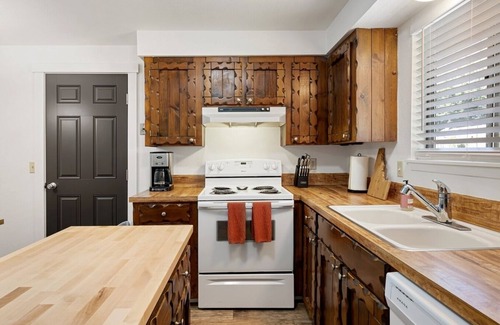 The kitchen is fully stocked with everything you will need for cooking. This includes an oven, stove, microwave, cooking utensils, basic cooking supplies, and a kitchen table with seating for 4 people.
