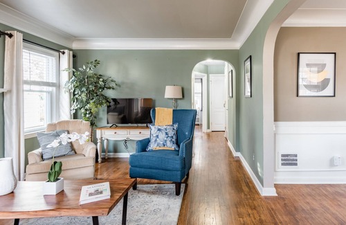 This classic renovated bungalow is aesthetically peaceful, super chill, with a mid-century vibe. We balance the serene atmosphere with modern touches - smart TVs upstairs and down, fast Wifi, stainless appliances in a fully stocked-kitchen, gorgeous bathrooms, and the highest quality mattresses and linens.