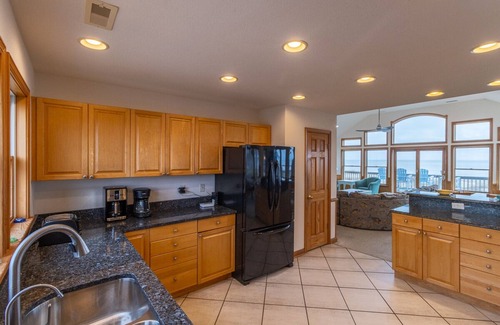 Top Level: King en suite with private bath, large kitchen with wrap-around kitchen bar, dining area, living area with flat screen TV, sliding door to oceanside deck with beautiful views and gas fireplace. Separate den off the living room area with unbelievable views. Half bath.