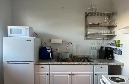 Convenient and cozy, this studio offers your own private parking space, private entrance, & full kitchen & bathroom.
