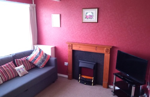 Double glazed window and door to front, electric fireplace, TV point, sofa-bed, and smoke detector.