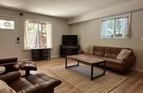 Welcome to Peterson's Place! Step inside this downstairs, private studio with an open layout that combines the living, sleeping, and dining areas seamlessly, making the most of the available space. The sleeping area has a queen and full size bed that is separated by a curtain off the living room. The full kitchen has everything you need for making meals. Off the kitchen, you will find a full bathroom then laundry room. Peterson's Place offers a delightful escape for solo travelers, couples, or small families seeking simplicity, comfort, and a peaceful ambiance. It's a wonderful space to unwind, recharge, and immerse yourself in the tranquility of a compact yet inviting getaway.