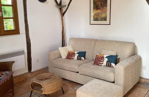 Plenty of space and greenery surround this renovated, comfortable barn. Peace and quiet just a few kilometers from the ocean. Living room with kitchenette and lounge area, shower room, 2 bedrooms (1 double bed and 2 single beds), washing machine in the laundry room shared with another gîte (with shared iron and ironing board), dishwasher, microwave, flat-screen TV, TNT, Wi-Fi internet access, electric heating, small private garden at the gîte, garden furniture, barbecue, terrace. Swing. Private garden at the gîte on 18 hectares of shared land. Unfenced grounds. Nearest spa resorts: Dax and St Paul Lès Dax (13 km). Pizzas are available 3 km away, and a restaurant is 6 km away. Numerous hiking trails. Surfing, bodyboarding, and longboarding are 24 km away. Marine lake is 18 km away. ACCOMMODATION NOT SUITABLE FOR PRMs.