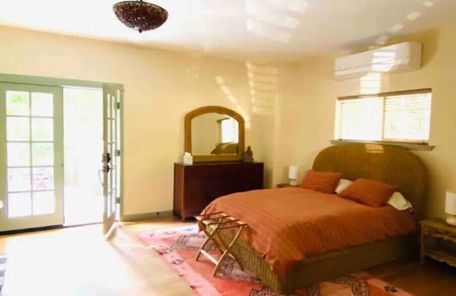 Our property has two units. The main house (sleeps 4) and petite studio w/kitchen + bath (sleeps 2). You can rent both if you have a big group. See the main house listing - Secret Garden Bungalow. Each building is private with separate entrance. A gate opens to bring the two together and make an open compound.