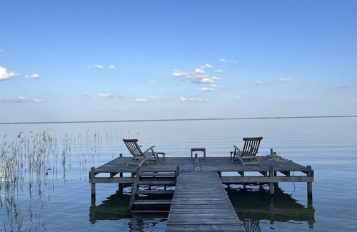 Wooden house on the shore of Lake Cazaux with private pontoon, access only by boat or 4x4 5 minutes from the port of Cazaux or Maguide and 10 minutes from Biscarrosse Plage. Dune du Pyla at 15 minutes. Arcachon 20 minutes