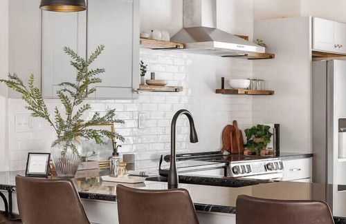 Nelly's Oasis — Main Level: Oversized Family Room, Kitchen, Dinette, Coffee/tea bar, Full Bathroom, Industrial Doors, Laundry Room with Washer and Dryer | Second Floor: Bedroom 1 (King) w/ Full Bathroom, Bedroom 2 (King), Pull out Full Sofa Bed w/ Full Bathroom