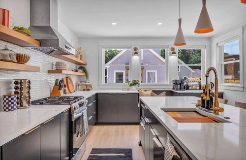 Freshly renovated from top to bottom, this beautifully designed home offers a perfect blend of modern comfort and Cleveland charm. Thoughtful designer touches, brand-new furnishings, and a warm, open layout create a welcoming space ideal for both relaxation and entertaining. From the moment you step inside, you’ll feel at home—whether you're gathering for a shared meal, streaming your favorite shows, or enjoying a quiet morning on the covered porch. Every detail has been curated for comfort and convenience, making it an excellent choice for families, professionals, or small groups. Tucked in a walkable neighborhood near Gordon Square and just minutes from Lake Erie, this location is unbeatable for guests looking to explore, unwind, and experience the best of Cleveland.