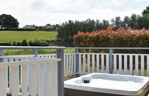 One of a number of similar detatched lodges on site in lovely landscaped grounds, with a hot tub to relax in and views of the gorgeous surroundings.. 2 steps to entrance.