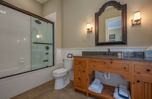 A fully equipped kitchen awaits you with top-quality appliances including a Range, Oven (built into kitchen island), Microwave, side-by-side Refrigerator/ Freezer, Coffee maker, and dishwasher. A 6-seat dining table is located conveniently next to the kitchen. Feel spoiled with comfort and style lounging in this Living Room with a Gas Fireplace, Wet Bar (you supply the beverages), and a large screen TV. Or perhaps lounge outside in the evening on the deck beside a wood-burning fireplace, soft lounge seating which will help you relax and unwind from your day while creating beautiful memories you will not soon forget. The Master bedroom has a King Bed, while the second bedroom offers two double beds. The closets are expansive, and each bedroom has a large bathroom. A half bath is located off the hallway leading to the second bedroom. Surrounded by the beauty all around and creating memories that will last, you’ll soon want to come back to the tranquil luxury of Pine Ridge Villa.