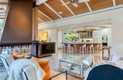 Enjoy the tranquility 'Pineapple Palms Oasis' offers while keeping the classic old Palm Springs alive. The space is ideal for families to be together while each room provides a generous amount of space and privacy for each guest. The common areas promote togetherness whether that’s splashing in the pool, sitting around the fire pit, having a glass of wine in the spa, enjoying a game of billiards, curling up on the couch to watch a movie, finding your inner chef in the gourmet kitchen or sharing a meal at the 10 seat dining table, the possibilities are many…