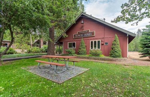The Pinebrook Chalet in Arnold is perfect escape for a two families. The perfect place for those who want a more comfortable location. Its just the a perfect size for 8-10 guests who will feel right at home with 4 cozy bedrooms, including 3 queen bedrooms and a separate bunkhouse room containing full bunkbeds. The upstairs bathroom offers a jetted bathtub for a relaxing soak after a day of exploring. AC, Wi-Fi, and a washing/drying machines are just a few of the amenities available. A deck jacuzzi is helpful to soak away aches of a long hike at Big Trees (15 min.) or a day of skiing at Bear Valley (34 min). Summertime allows for the use of Pinebrook Lake and all the amenities. It's easy to see why you'll be able to unwind and relax at the Pinebrook Chalet.