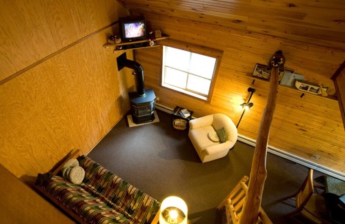 Upper unit of duplex, all knotty pine interior, gas fireplace, fully furnished, some linens provided. Short ride to snowmobile trails, groomed cross county ski trail on property, downhill ski area approx 1 hr away. Parking available for trailers. For summer canoeing and kayaking from the private boat landing on the Headwaters of the Wisconsin River. Lots of wild blueberries to pick.