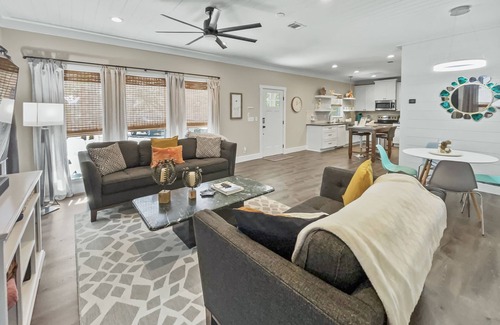 Outside, you'll find a lovely patio area where you can enjoy your morning coffee or evening cocktails while soaking up the Florida sunshine. And being just a short walk away from 30A Avenue, you'll have easy access to boutique shops, delicious restaurants, and charming cafes.