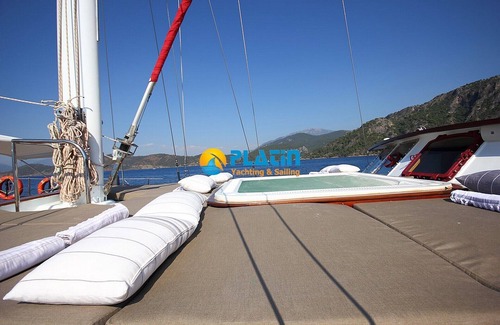 Our yacht has a length of 37,20 meters and is ready for you with 5 comfortable cabins. She was launched in year 2008 with experienced and friendly crew offering guest satisfaction. There is a Jacuzzi on the deck of the boat with spacious and comfortable living areas that you will enjoy on your holiday. Internet access in Turkish waters. You can also sail when weather conditions are appropriate with full sail equipment and leave with unforgettable memories of your tour