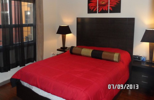 1 bdrm + den on the 5th floor overlooking the small courtyard which is very quiet and peaceful. Lake across the street. Master bedroom has a queen bed, spacious living room, pull-out sofa.; a T.V. There is 1 full bathroom. Full kitchen, eating bar, dining table, laundry, and balcony with gas barbeque, underground parking. All utilities included... Contact me for more details for more information or pictures.