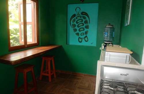 With the exception of the walls, everything in this apartment is new. From the floors, cabinets, appliances, linens, and kitchen items to the mattress, the furniture and the paint, all is new. We have decorated it with a small part of our art collection from Mexico and Guatemala.
