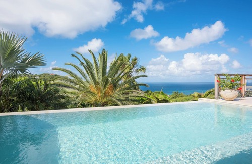 Maracuja is situated on the hillside of Vitet. The villa has a huge garden and a panoramic view over Grand Cul de Sac and Tortue island. The two main bedrooms, on the main floor, are identical and accessible by the terrace. The third bedroom, downstairs next to the fitness room is perfect for teenagers. With its exotic chic this villa is very pleasant.
