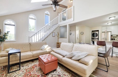 The house is perfect for families or friend groups. There is a full bathroom on each floor, with 2 master bedrooms on each floor.