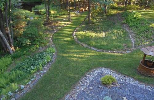 Lake at top of driveway feeds into our stream in the back yard and then into the cove which feeds into the largest lake in the development. Depending on the rain fall, the cove water level will be affected.