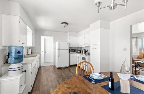 The recently refreshed Assistant Keeper's House 2 is a classic three bedroom, two bath family home that sleeps six. This home was just updated with fresh paint, new Berber carpet, laminate flooring in the kitchen, dining room and entryway, new drapes and hardware, bathroom lighting and mirrors and contemporary and classic wall decor. This comfortable home away from home features two queen beds and two twin beds, all with Tempur-Pedic mattresses, and an electric fireplace in the master bedroom. There is a wood burning stove in the living room (we provide the wood), flat screen TV, DishTV, DVD player with copies of the movies that have been filmed at the Lighthouse, comfortable couches and chairs and excellent high speed WiFi. You are welcome to use the picnic table on your private patio outside of the kitchen and dining room. The home comfortably accommodates up to six adults and the kitchen is stocked accordingly with pots & pans, utensils, mixing bowls, cutting boards, measuring cups, coffee maker, toaster, blender, etc. We provide salt and pepper, bring your own spices, cooking oils, foil, plastic wrap and/or storage containers. The Pacific Ocean is out your front and back doors, the coastal mountain range and Manchester State Beach are just to the east and you are only a few steps away from the Point Arena Light Station Store.