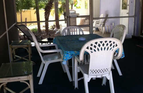 Come enjoy our beautiful pool home on a large 100' lot located in Marathon, in the heart of the Florida Keys. There is immediate ocean and gulf access through Boot Key Harbor to the 7 Mile Bridge for big game or back country fishing. There is plenty of room for your boat with 50 feet of dockage available and a 5+ foot draft. Surround yourself with the amazing tropical landscaping, or relax under the large screened porch. Dozens of palm trees, orchids and native Florida landscape surround this private home. Plenty of patio furniture make this the ultimate Keys retreat. Cement walkways take you from the porch and carport to the dock and patio area. The pool patio offers plenty of sunshine to work on your Florida tan. Lounge chairs and chairs available by the pool.