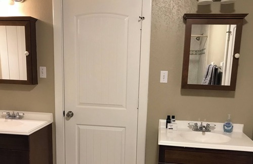 Guest house C is one of six units that are built around the swimming pool, hot tub and grilling area. We are located on the northwest side of town, near Sea World, Six Flags, downtown, Lackland Air Force Base and the National Shooting Range. There are lots of restaurants and stores within minutes. This house is part of a duplex right on by the pool. There are two bedrooms and a Jack and Jill bathroom. There is a hot plate, microwave, refrigerator as well as a coffee maker. Sleeps 4. Check in at 3:00 p.m. and check out is at 11:00 a.m.