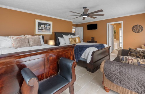 Keep it simple at this peaceful and centrally-located place. Provided indoor on the property are karaoke, board games, PS3 and hot tub (available only October to April); pool table and table tennis (breezeway); outdoors: horseshoe set, swing, firepit, BBQ grill, cooler and swimming pool (only available May to September.) This 2700 sq ft ranch sleeps 10 with 5 queen beds, 5 TVs , and dining table able to seat 10. Downtown Fayetteville is 2 miles away, Trilith Studios is 4.7 miles away, the Fayette Pavilion (outdoor shopping mall) is 4 miles away. Fun Spot on Hwy 85 is 10 miles away, and Hartsfield Int'l Airport is 25 miles away.
