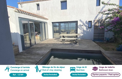 Come and discover La Guérinière, a small town on the island of Noirmoutier, both charming and peaceful. For an unforgettable stay, stay in this spacious, bright and modern house that is fully equipped to guarantee optimal comfort during your getaway close to the beaches. Indeed, you will have direct access to the first beach from a small path at the end of the garden. Imagine being able to cool off at any time of the day, go for a morning stroll when the beach is still deserted, or even enjoy an exceptional sunset, a few meters from your door.A large garden is also at your disposal, ideal for enjoying outdoor meals while enjoying breathtaking views of the beach.If you want to take a break during the day, you can take advantage of the heated pool (available from 15 May to 15 September) as well as a games room, equipped with various games for children. (For your safety, jumping on the net is not allowed.)As soon as you arrive in the house, you will discover the living space with its living room, its comfortable sofa, a television and a fireplace, ideal for warming up in winter and enjoying convivial moments near the fire. The dining room and the open kitchen, fully equipped, await you for your meals. You will find induction hobs, an electric oven, a microwave, a microwave, a kettle, a blender, a Nespresso coffee maker, a toaster, a fridge-freezer, as well as all the utensils needed to cook.Also on the ground floor, a first bedroom with a double bed (140x190) offers a view of the pool, while a second bedroom, also equipped with a double bed, overlooks the sea. A shower room and a bathroom are accessible, as well as a separate toilet and a laundry room equipped with a washing machine, a dryer and an iron. You can also enjoy the patio with direct access to the pool.Upstairs, the master suite offers a bath with sea view and a dressing room. You will also have access to the games room area and the last bedroom, which has two single beds (90x190) and an adjoining shower room.Located in an ideal area for families, as close as possible to the sea, the rental is located in:- 10 m from the sandy beach “de la Cantine”, - 2 km from the “SPAR” supermarket, - 2 km from the restaurant “Chez Patacol”, - 2 km from the sandy beach “des Éloux”, - 3 km from the restaurant “Au P'tit Plaisir”, - 3 km from the supermarket “Intermarkt”, - 3 km from the supermarket “Biocoop”, - 5 km from the city “of Noirmoutier”, - 5 km from the sandy beach “des Sables d'Or”, - 6 km from the bus station “de Noirmoutier”, - 78 km from the airport “Nantes Loire-Atlantique Airport” Located in La Guérinière, you are in the middle of Noirmoutier Island. To the East, you discover the oyster port of Bonhomme, the fishermen's huts... To the west, the long sandy beach. Over the seasons, nature, its landscapes and its smells change, as do the activities of the island. Come and observe and visit it throughout the year: the Passage du Gois, the Bois des Eloux, the salt marshes, the Bois de la Chaise, the village of Le Vieil, the village of Le Vieil, the port of Herbaudière...This rental benefits from a concierge service with a team available throughout the stay for personalized services.This furnished apartment has wi-fi access.This rental does not have access for people with reduced mobility.Pets are not allowed in this rental.The tourist tax is added to the rental amount and will be payable in advance of your stay.We also ask you not to book this accommodation for professional purposes (cocktail, seminar, movie shooting, other events).We also ask you to respect the neighborhood by avoiding noise pollution after 22:00REF: hoomy12189