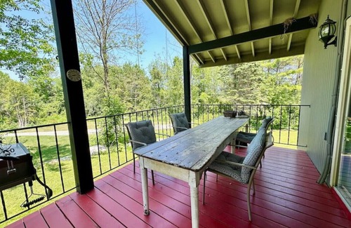 The Porchside Retreat extends into a large walkout backyard, your private oasis amidst a canopy of trees. Gather around the fire pit for stories and s'mores, or simply relax in the comfortable seating, immersed in the tranquility of nature. Bird feeders invite a variety of local birds, making this backyard a delightful sanctuary for nature lovers and bird watchers alike.