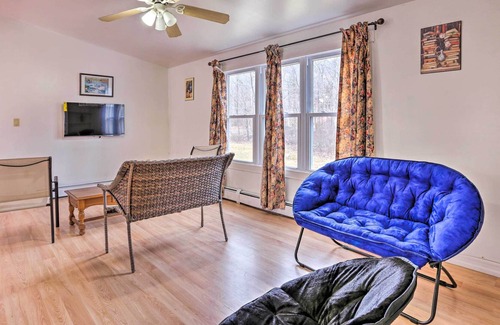 Offering easy access to outdoor recreation, this no-frills duplex home is situated about 28 miles from the Delaware Water Gap National Recreation Area in Port Jerivs, New York. Go rafting down the Delaware River, explore trails at High Point State Park, or hit the slopes at Holiday Mountain Ski & Fun! You can unwind at this 3-bedroom, 2-bathroom vacation rental with essentials like free WiFi, a Smart TV, and a well-equipped kitchen, plus a deck where you can enjoy the fresh air.