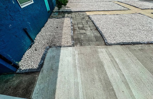 Driveway has been newly poured and cannot be parked on until April 24 so park in the street or into the yard