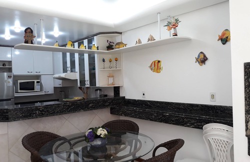 Large triplex apartment, light, airy and comfortable in a gated community by the sea. Direct access to Jurerê Beach. Ideal for up to ten people. Excellent location on the beach block, allows you to come and go without having to rely on a car, so you are comfortable for a great vacation. Ground floor with parking for two cars, balcony, living room and dining room, full kitchen and gourmet space with barbecue, laundry, bathroom and everything that can provide great leisure. Upper floors with four bedrooms, a suite and bathrooms, all with great comfort. Housekeeping and linen are provided (sheets and towels).