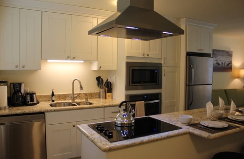 Fully equipped kitchen - includes cookware sets and dinnerware sets, over-the-range convection/microwave oven,