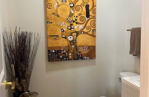 'Fun in the Poconos' is very inviting, and perfect for active families. It is beautifully furnished and maintained with fun, modern art décor. This townhome has 4 levels, with 4 bedrooms and 4.5 baths. Each bedroom, living room, and family room have a tv, with cable channels. Three bedrooms have a king-sized bed, and one bedroom has two twin beds. There is a sleeper sofa in the fourth floor bedroom that sleeps 2. Each of the four bathrooms have a shower/tub, and a hair dryer is available.