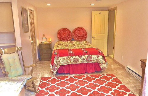 Located in Prescott's banana belt, the Sunroom Suite features a spacious, lightly-furnished sunroom with an enclosed raised bed flower and vegetable garden. The beautifully crafted flagstone sunroom features flagstone floors and flagstone garden walls with three walls of windows. It is south-facing, thus wonderfully warm in the winter. However, in the summer, thanks to the deciduous, shade-giving leafy trees, it feels refreshingly cool. A quiet nature lover's dream, world-class Granite Gardens Trails just outside the door!