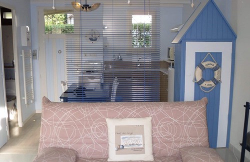 Beautifully decorated (marine theme), very clean, very well located near beaches and shops, very quiet and wooded.
