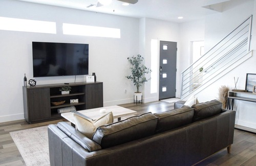 Bathrooms: The master bathroom has dual vanity sinks, a sleek tile shower, and elegant quartz countertops. There’s also a half bath downstairs and a full bath upstairs with dual vanity sinks. We provide all the essentials, including soap, conditioner, shampoo, and other basic amenities, so you can feel right at home.