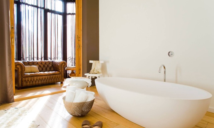 It offers deluxe features such as the freestanding Agape Spoon tub and a Chesterfield in the splendid master bedroom, and a combination of rain showers and hand showers in all bathrooms.The bedrooms have soundproof French balcony doors, so you can shut the sounds of city life out for a good night’s rest.