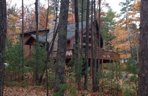 Beautiful Custom built, 5 bedroom, 3 bath, three level home situated on 5 wooded acres with 150' of private lakefront. Private pier with sand bottom frontage that's perfect for fishing and all water sports. Located on Dam Lake of the Sugar Camp chain of 5 lakes. Ideal for family reunions and get-togethers. Brand new modern stainless steel appliances. Free wi-fi and cable tv on large flat screens. Enjoy lounging around the two fireplaces or the outdoor lakefront fire pit. Prepare meals outside on the deck on the Weber grill over looking the lake. Perfect views for relaxing or happy hour. Great fishing in summer and winter. Sled directly to trails.