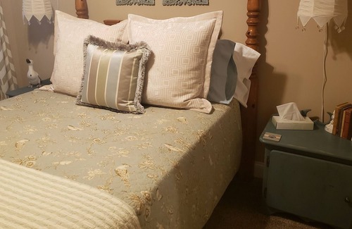 Stay in a tastefully decorated basement apartment with its own entrance close to downtown Simpsonville with eating, shopping, and healthcare within a mile or two. Convenient to I-385 and only 15 minutes from downtown Greenville with all of its amenities. This apartment comes with 2 bedrooms, 1 bath, full kitchen and living room. It can accommodate 2-3 couples (extra sleeper sofa)or a family. Wifi and Smart TV included.