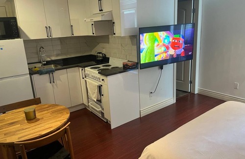 Step into our newly renovated, impeccably clean bachelor suite, offering cozy comfort and safety, with your own separate entrance. Enjoy the convenience of free parking, a full kitchen, and entertainment with TV and WiFi access. Just 25 minutes from downtown, close to shopping malls, public transit, and a buzzing community center. No smoking, vaping, or drugs allowed. Your adventure starts here – book now for an unforgettable stay!