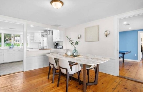 Michelle Sylvia coastal collection rental home. The epitome of beach casual and barefoot lifestyle is a tranquil, direct beachfront home on Nantucket Sound to cherish your summer memories for years to come from spectacular sunrises to sunsets. This property offers 2 homes rented together and steps away. The quintessential beach house is a single-story home comprising of 3 bedrooms 3 bathrooms, living room with a TV, sunroom for relaxing and enjoying the view, kitchen with breakfast bar and dining area. Ping pong table for fun! The original guest cottage overlooking the beach and ocean was totally redone. The sun filled open living space consists of the kitchen, living room with views and TV. Two bedrooms and full bath on the first level as well as laundry. Dramatic second floor en-suite master with a private deck overlooking the ocean. This home has split unit air unit in both homes for AC. The private beach is large enough for everyone and just for you. Dogs welcome. HOME amenities outdoor shower, beach towels, beach chairs, gas grill, 2 coffee makers, all linens included starter supply of items for stay. Robert Paul Vacation Rental bookings include a non-refundable $250 fee that includes administrative fee and damage waiver assurance for self-reported incidental damage up to $1,000.00. Upon receipt of a booking request, an agent will reach out to discuss additional security protection which may be required at this property. *** All applicable taxes and fees apply. OFF season 3-day min offered.