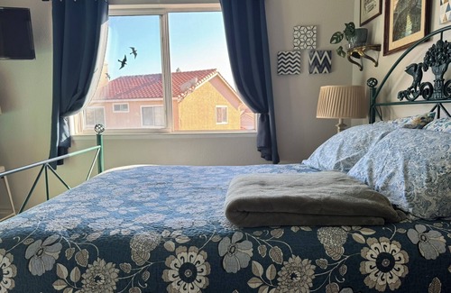 Welcome to this delightful house in Salinas. This brilliant property features a private bedroom with a cozy queen bed, perfect for a good night's sleep. With amenities like locking door, in-room tv and table/chairs, clean fresh towels and a fitness room, guests can relax and stay active during their stay. Our place will help you feel at home while you're traveling in Salinas.