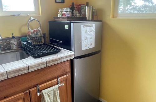 Coffee (French press pot) and tea provided as well as snacks, instant oatmeal, shampoo, conditioner, body lotion, soap, hairdryer, wall heaters, portable fan, games, books, many other amenities. Laundry room available - shared with owner.